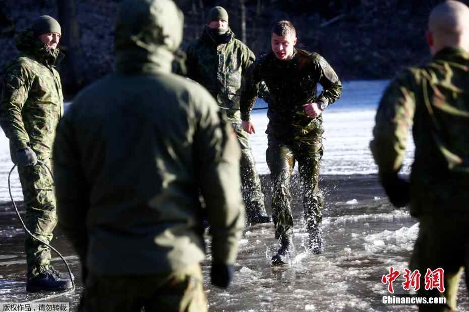 当地时间1月16日,立陶宛士兵们在鲁科拉参加训练,跳入寒冷彻骨的冰水中比拼忍耐力。