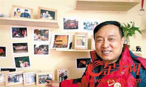 尚丙辉指着工作室里的照片介绍,每增加一张照片,就意味着又有一个流浪者回家了。 记者 朱清海/摄