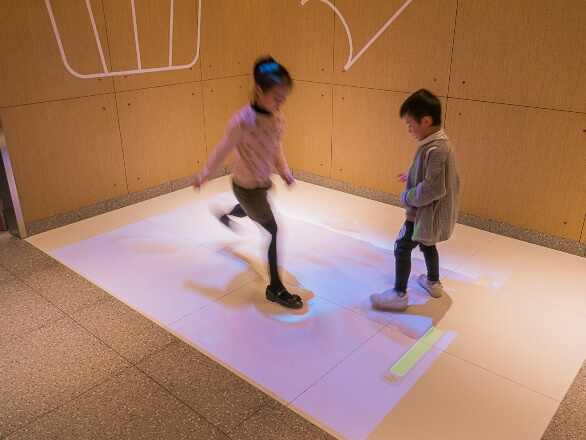 餐厅二楼设有电子互动游戏区,利用垂直投影和体感技术,让孩子动起来,踢一场虚拟球赛。