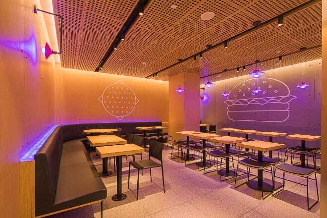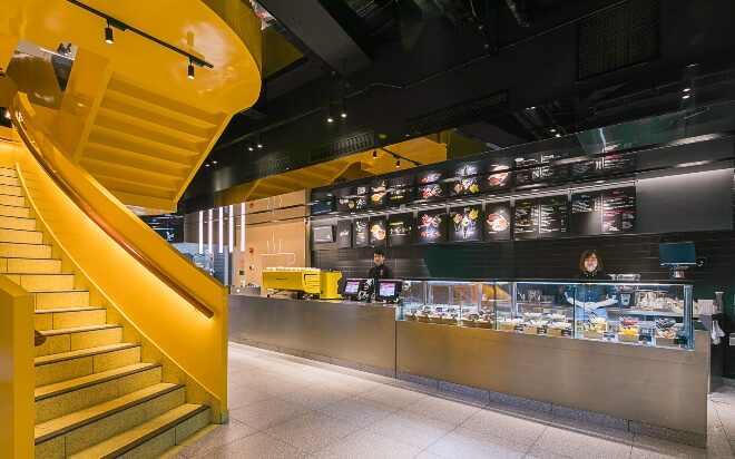 全新设计的独立点餐柜台,让顾客与接待员距离更近,沟通更容易。餐单和取餐牌使用动态电子屏幕,信息直观生动。