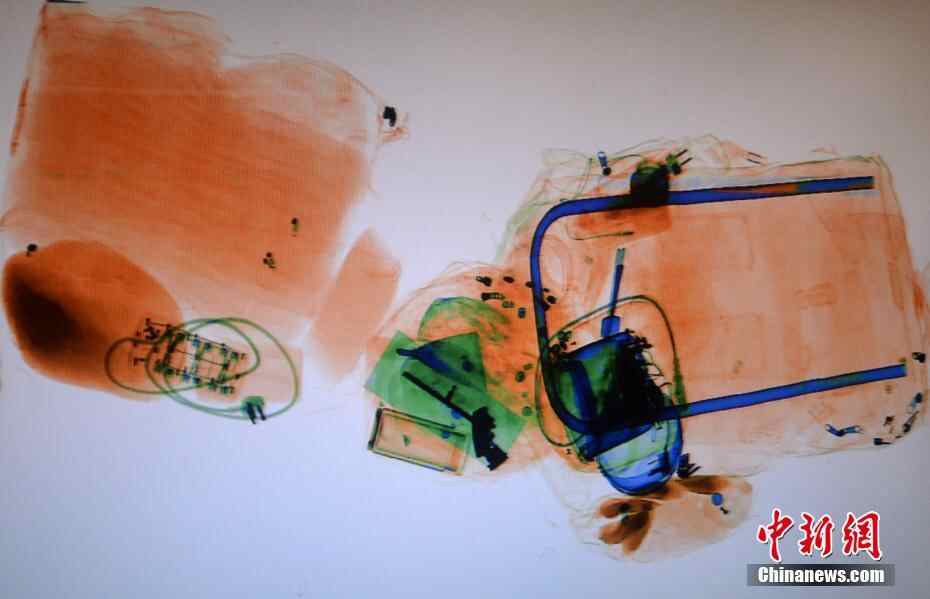 旅客的行李通过安检“X光机”所呈现的影像。孟德龙 摄