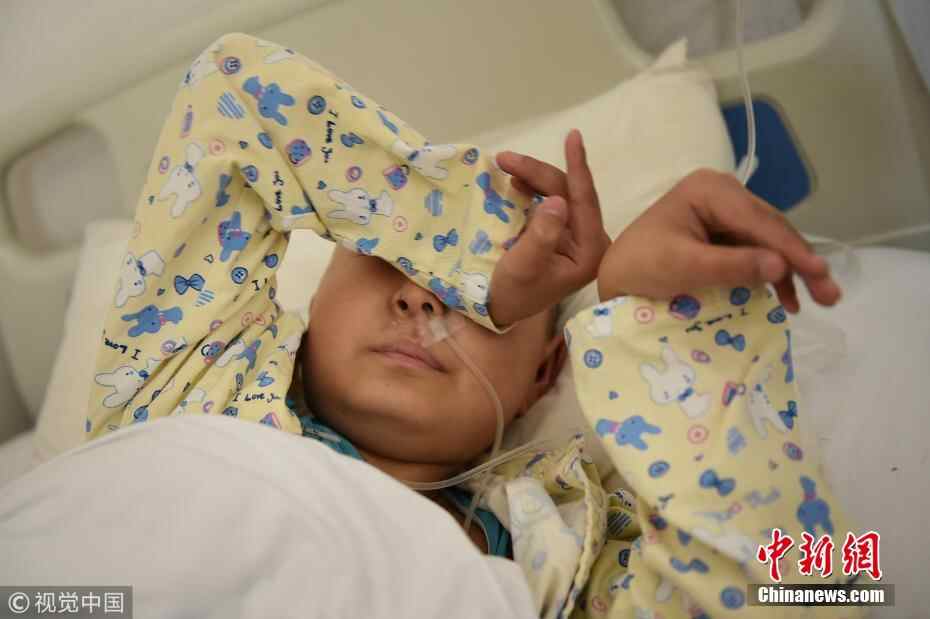 9岁的凯文是个懂事的孩子,自从生病以后,无论化疗骨穿多么难受,他从没在家人面前掉过一滴眼泪。妈妈是个地道的农村妇女,她总是拉着凯文的手,一遍遍地告诉儿子:孩子,妈妈会救你的!只要一家人在一起,共渡难关,你一定会好起来的,到时候,妈妈带你回家!乙图 摄 图片来源:视觉中国