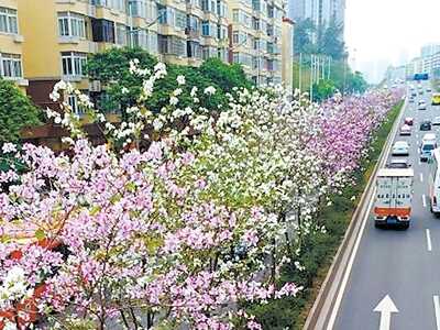 近年,区农业和园林局致力于天河景观提升,通过主题花景系列绿化改造,在天河街道及街旁绿地栽下一片片开花乔木,为郁郁葱葱的满眼绿意增添多种色彩,为市民打造了一个个靓丽赏花点。现在,广汕路、临江大道、金穗路的黄花风铃木,黄埔大道、科韵北路、天源路、天河公园、火炉山北广场的宫粉紫荆,天河公园、燕岭公园的紫玉兰都已随春而来,精心的景观设计使观花乔木与全区1万平方米的花境、花带、花箱景观相呼应,打造璀璨迷人的春景,这个春天,来天河赏花。