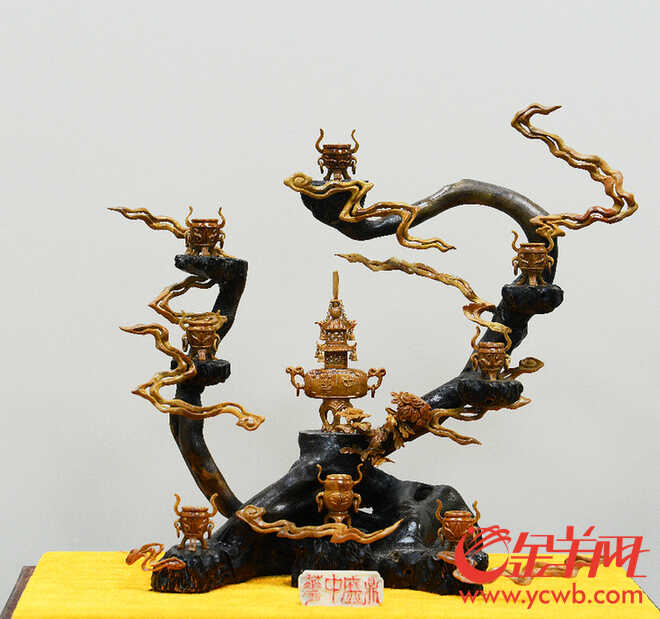 近年来,曾宪鹏和父亲潜心创造的榄雕代表作品只展不卖。2012年雕刻的《鼎盛中华》、2013年的代表作《中华乐韵》、2014年花了11个月才完工的《甲午魂》,他都没有考虑过出售。“很多人说我不是做生意的人。”
