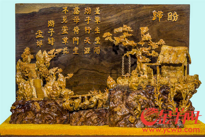 记者观察,在榄雕创作中,父子二人的风格的确不同。曾昭鸿作品以传统的吉祥图腾、舟船为主;曾宪鹏作品则以纪实创作为主。如《盼归》就是以妻子家乡的外婆坐在村口盼望孩子回家的故事而创作的。