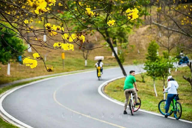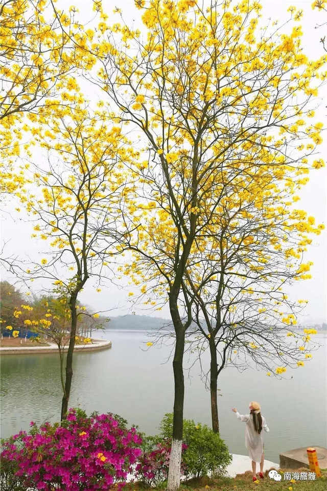 东莞松山湖的黄花风铃木也开放了。黄花风铃木如诗如画,远近各不同,伴着湖水绿地,像画师精心着笔的水彩画,挂满松山湖的每处。