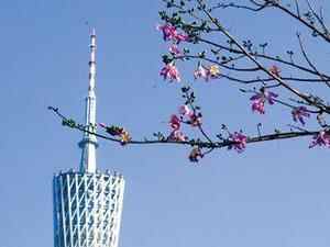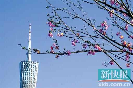 ■二沙岛上蓝天下盛开的木棉花。 新快报记者 毕志毅