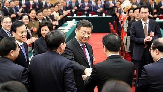 审议结束,习近平走到代表委员中间,同大家握手道别。每位代表都想同习近平再说上几句话。