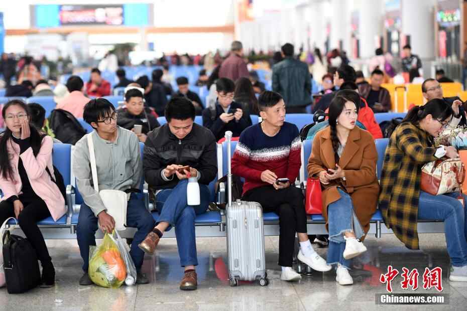 4月7日,昆明南站候车厅里等候乘车的旅客。当日,昆明南站迎来清明假期返程客流高峰。 中新社记者 李进红 摄