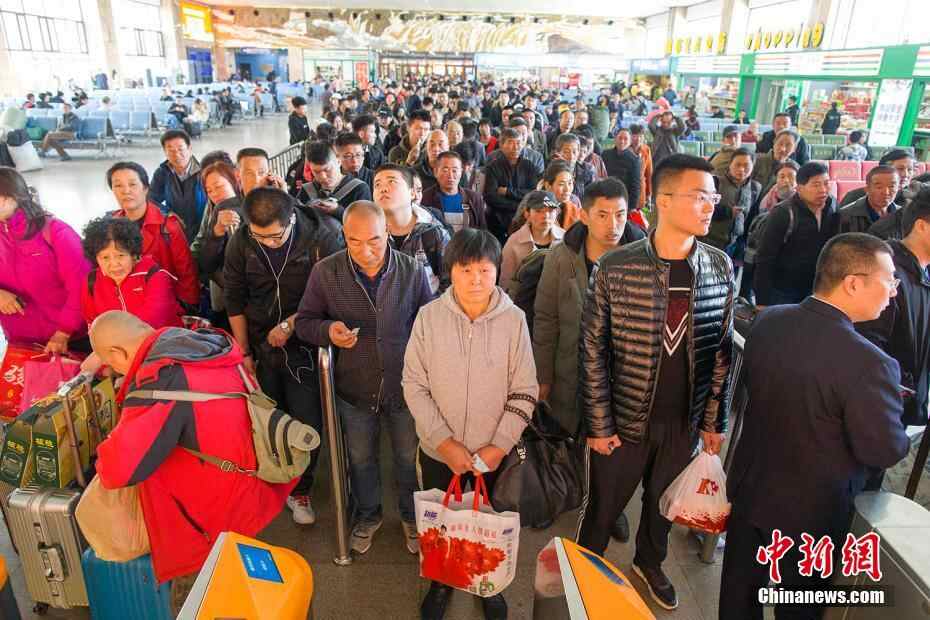 4月7日,山西太原火车站候车室,民众正在等候检票乘车。当日,中国铁路总公司披露,中国铁路预计发送旅客1369万人次,预计增开旅客列车444列,其中跨铁路局中长途旅客列车91列,铁路局管内旅客列车353列。张云 摄