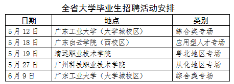 据悉,下一步全省将陆续在广州、清远等地举办5场大型毕业生招聘活动(详见表格),省征兵办都将安排设立征兵政策咨询点,为广大热血青年参军报国提供政策咨询。