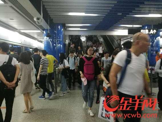 昨日中午时分高峰期已过,记者在体育西路地铁站看到,只要有车到达,狭窄的3号线月台便马上“爆满”,连带连接月台和站厅的扶手电梯也立即“人流满溢”。如果想快速通过扶手电梯快速往来月台和站厅,走扶梯几乎不可能。