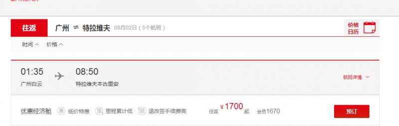 HU465 | B787 | 每周2/4/6 | 广州 | 01:35 | 08:50 | 特拉维夫 |
