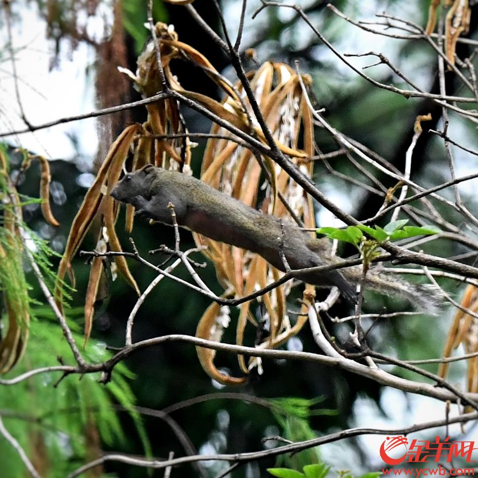 灵活的小松鼠可以从一棵树“飞”到另一棵树。记者 陈秋明 摄