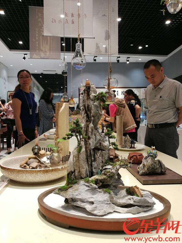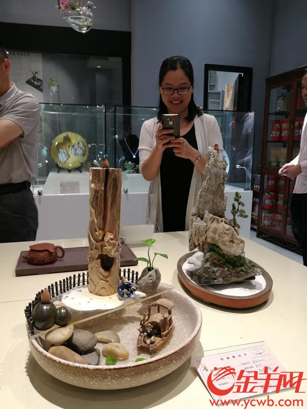 沉香制品与其他材料的混搭展示。摄影:记者黄宙辉。