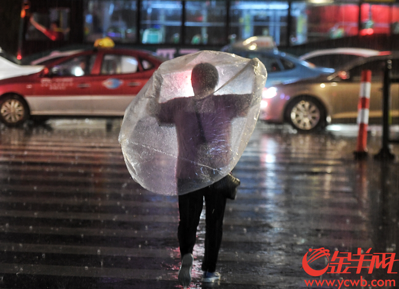 5月2日晚,羊城暴雨来袭,行人猝不及防,狼狈出行。 金羊网记者汤铭明摄