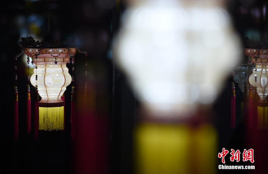 浙江省台州市仙居县皤滩古街里展示的针刺无骨花灯。中新社记者侯宇摄