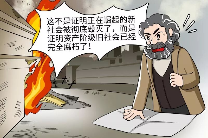 对反动派的卑劣行径,马克思怒不可遏。他说:“在现代最惊心动魄的这场战争结束后胜败两军联合起来共同杀戮无产阶级这样一个史无前例的事件,并不是像俾斯麦所想的那样,证明正在崛起的新社会被彻底毁灭了,而是证明资产阶级旧社会已经完全腐朽了。”