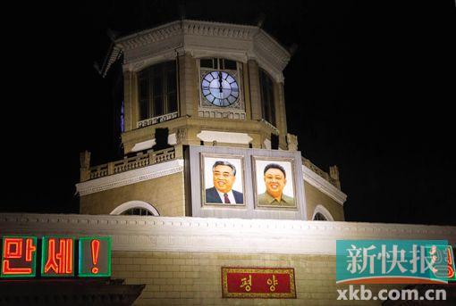 ■原平壤时间5月4日23时30分时,平壤火车站主楼正面的时钟被拨快了30分钟,指向0点位置,即时间来到了5月5日,标志着朝鲜正式开始实施修改后的平壤时间。新华社发