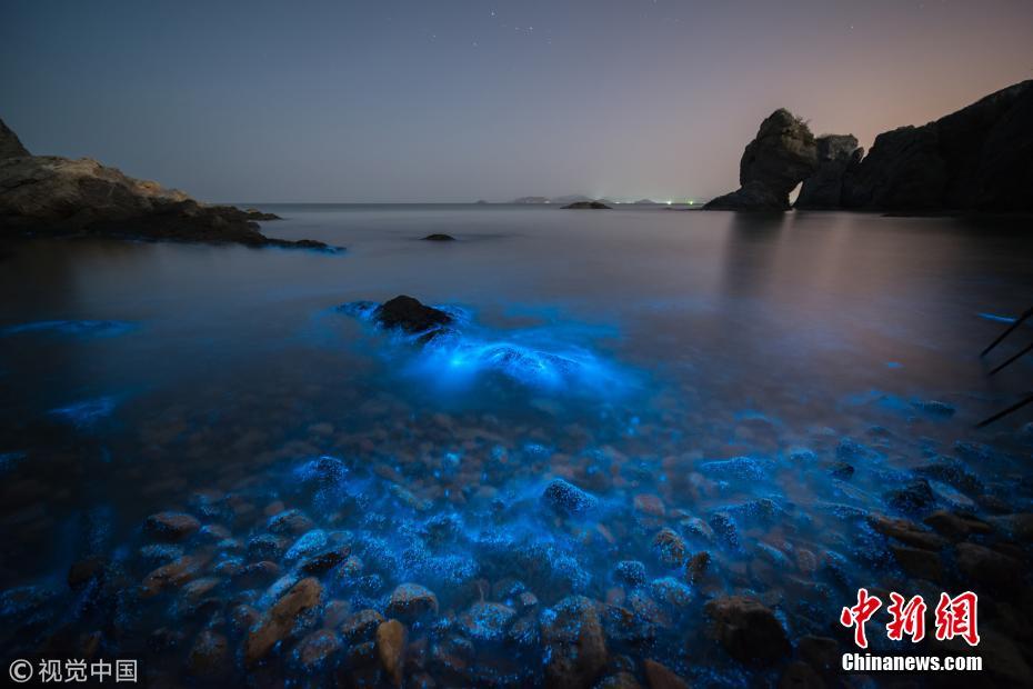 2018年5月5日,大连小黑石海域出现“荧光海”奇观。“荧光海”实际上是一种生物发光现象,是生物通过体内的一定化学反应,将化学能转化为光能释放的过程。 赵相勇 摄 图片来源:视觉中国