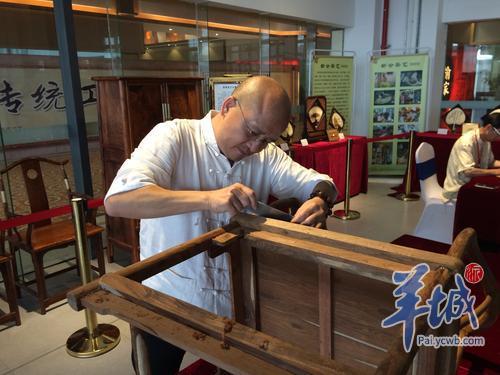 广东省工艺美术大师巢烜宝展示广作家具制作技艺