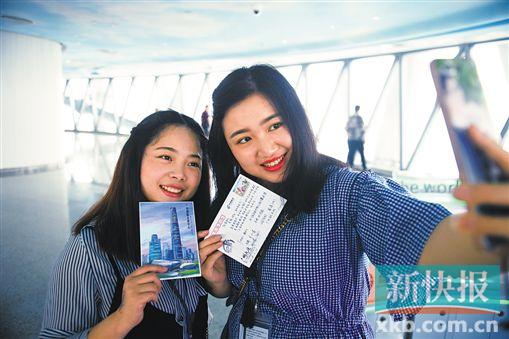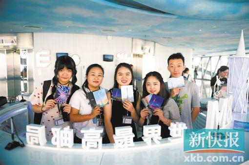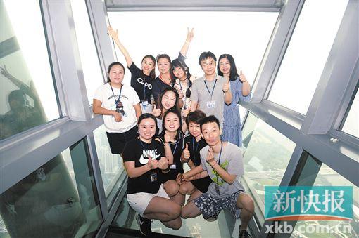 她就是“微笑女孩”高莹。当年只有15岁的她如今在网上创业,开了一家小网店,主要卖一些手工品和日用品,生意已是小有规模。她很爱笑,嘴角总是上扬。昨天,在广州塔108层的悬空玻璃观景平台上,勇敢的她不仅走到悬空玻璃上,还大胆地跳了一下,引得旁边的同伴一阵惊呼。在她的感召下,先前说不敢走悬空玻璃的何静和甯潇,也鼓起勇气走过去和大家一起合影,留下了难忘的一刻。