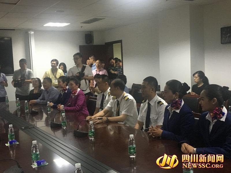 3U8633航班“英雄机组”亮相 机组人员状态良好