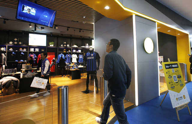 上海一名消费者通过面部识别进入位于杨浦区的“无人店”(2017年11月6日摄)。新华社记者 方喆 摄