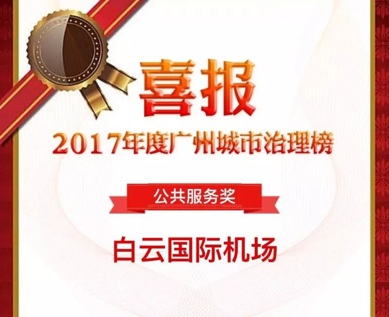 喜报 | 白云机场获得2017年度广州城市治理榜公共服务奖