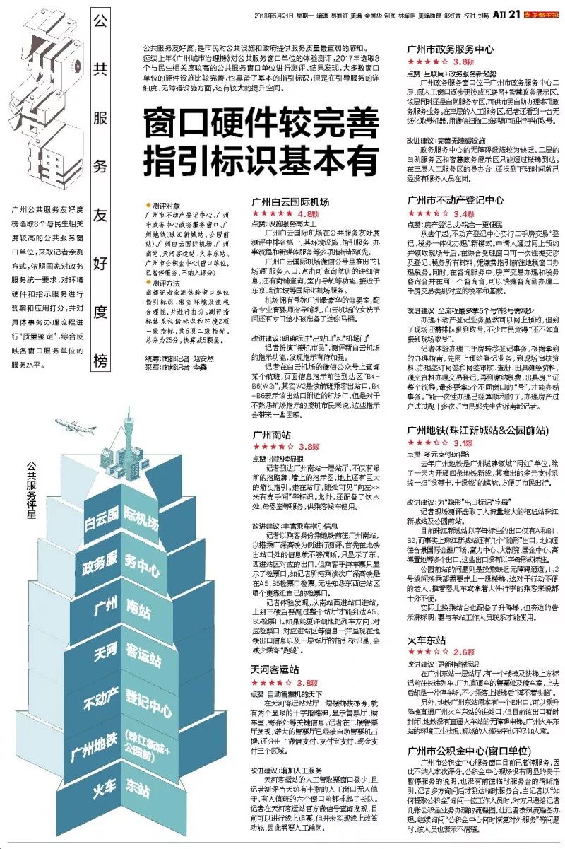 5月21日,《2017年度广州城市治理榜》出炉,白云机场在“广州公共服务友好度榜单”的测评中表现出色,得到媒体、市民和专家的肯定。“公共服务友好度”,是市民对公共设施提供服务质量最直观的感知。《南方都市报》在AⅡ21版登出: