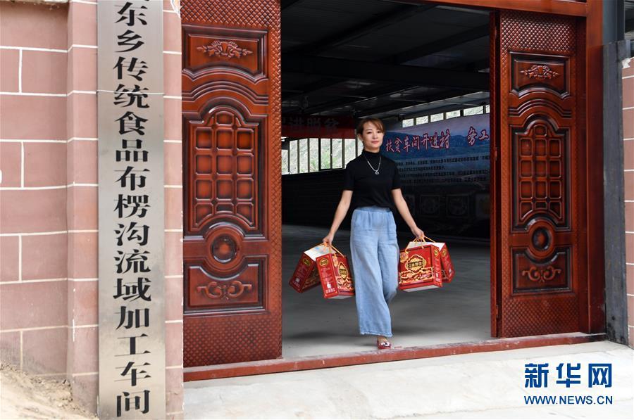 在东乡族自治县高山乡布楞沟村的扶贫车间,马娟将包装好的油馃馃提出来准备装车运走(5月24日摄)。 1991年出生的马娟是甘肃省临夏回族自治州东乡族自治县锁南镇锁南村人。2014年从兰州一所院校本科毕业后,她考上了西安建筑科技大学的研究生。2017年,当同学们大都在城市找工作的时候,马娟独自返回家乡开始创业。 “家乡很贫困,我觉得自己应该回到家乡发展事业。”马娟介绍说,当地的特色食品油馃馃一直很受欢迎,而制作油馃馃又是当地妇女基本都掌握的手艺,马娟决定把家乡的美食推向市场。她召集村里的贫困妇女到作坊加工制作油馃馃,并制定加工标准,自己动手进行包装设计、产品推广,从网店搭建到实体销售,每个细节马娟都亲手完成。功夫不负有心人,自今年1月份上线销售以来,马娟打造的东乡油馃馃供不应求。经过几个月的运营,马娟的创业项目得到了肯定,她被当地组织部门评为巾帼创业能人。为了帮助马娟扩大创业规模,同时带动贫困妇女脱贫,当地政府把一处位于东乡族自治县高山乡布楞沟村的企业援建扶贫车间交由马娟运营和管理。如今,布楞沟村50多户贫困家庭的妇女在家门口的扶贫车间制作油馃馃,有了一份稳定的收入。新华社记者 范培珅 摄