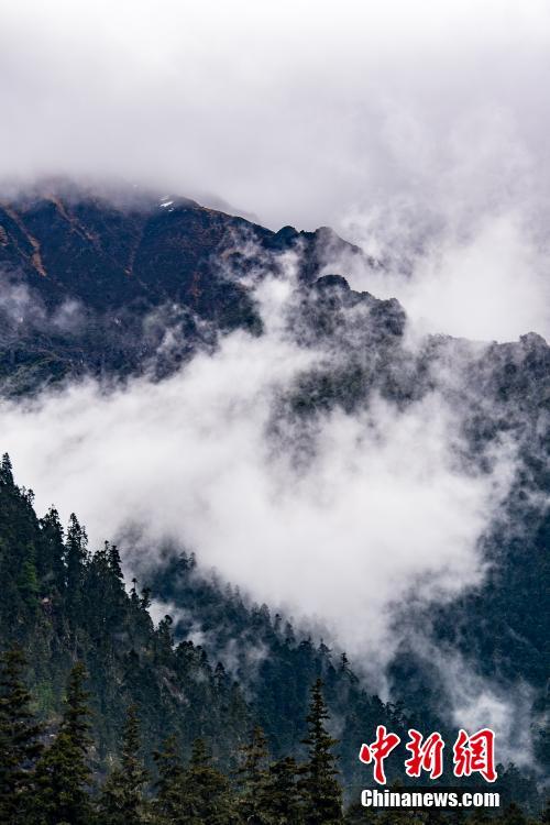 5月28日,一场夜雨过后的西藏林芝南伊沟内,群山在云雾缭绕中,宛如一幅美丽的水墨画卷。中新社记者 何蓬磊 摄