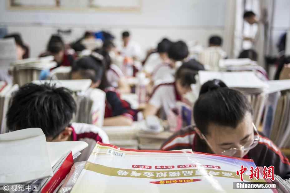 6月2日,山东滨州,2018高考前最后一个周末,在市实验中学高三年级,学生从早晨6点开始进行紧张复习,以平常心迎接高考。傅琨 摄 图片来源:视觉中国