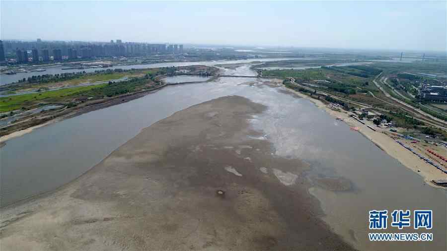 松花江哈尔滨段部分河床裸露(6月2日无人机拍摄)。新华社记者 王凯 摄