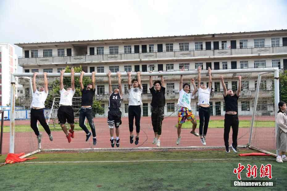 准备参加高考的学生在足球门前拍照合影。王以照 摄