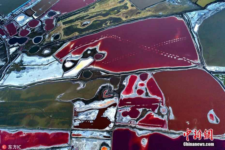 6月6日,入夏以来,随着气温的变化,山西省运城盐湖呈现出色彩斑斓、美不胜收的七彩美景,成为夏日盐湖特有的一道风景。薛俊 摄 图片来源:东方IC 版权作品 请勿转载