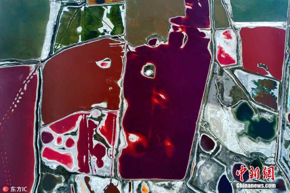 6月6日,入夏以来,随着气温的变化,山西省运城盐湖呈现出色彩斑斓、美不胜收的七彩美景,成为夏日盐湖特有的一道风景。薛俊 摄 图片来源:东方IC 版权作品 请勿转载