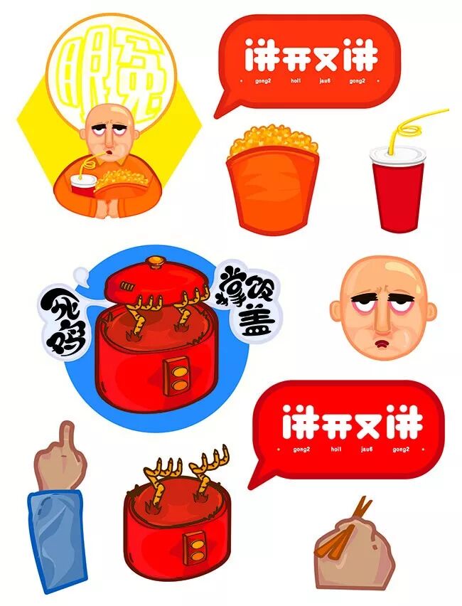 国语和粤语也不是完全不搭边的,国语的网络流行语是可以转化为粤语流行语,例如国语流行中的打CALL就是粤语里面的撑场,同样的意思,不同的语言国语粤语都相通,而流行语的受众人群必定是年轻人,而缺失的粤语文化认同感也是在于青年人年龄段,所以我在毕业设计作品内融入国语粤语相通的流行语之外,把整体设计也如毕业设计课题名字一样构思的很盏鬼,做出一系列的明信片设计,宣传单张设计,贴纸设计以及胸针设计。希望打造出年轻人能关心了解的设计,从而达到文化宣传的意义。