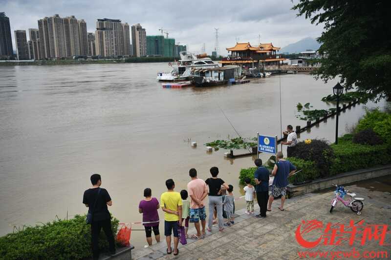 受台风“艾云尼”降水影响,今日(6月9日)上午10时,北江清远市区段水位高涨,清远市江滨公园观景长廊被水淹没。有市民趁着涨水在江边捕虾钓鱼。记者周巍摄