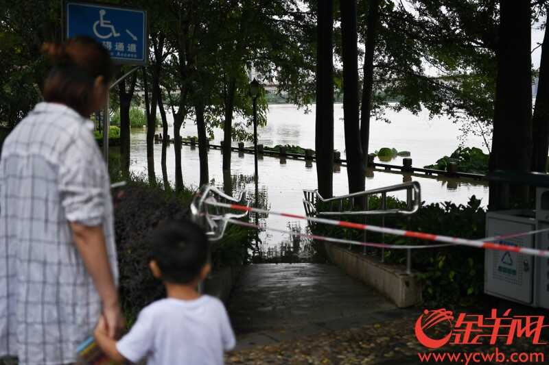 受台风“艾云尼”降水影响,今日(6月9日)上午10时,北江清远市区段水位高涨,清远市江滨公园观景长廊被水淹没。有市民趁着涨水在江边捕虾钓鱼。记者周巍摄