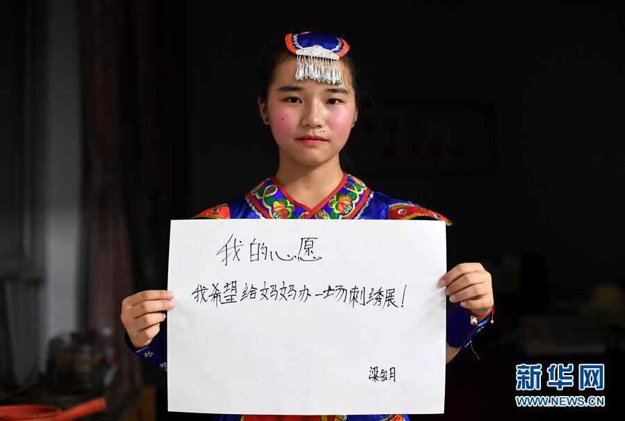 在广西柳州市三江侗族自治县洋溪乡中心小学,梁宏月展示她的“六一”心愿(5月30日摄)。新华社发(黎寒池 摄)
