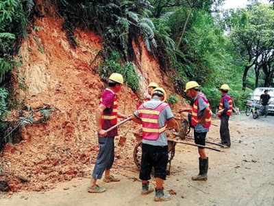金羊网讯 记者何伟杰,通讯员汪张阅摄影报道:受4号台风“艾云尼”的影响,广州市连日下了大雨、暴雨,记者从白云山管理局方面了解到,白云山风景区一些路段和区域也发生多处塌方和树木倒伏情况,景区正全力进行清障抢修(见图)。今天,经抢修后,景区大部分区域已重新开放。