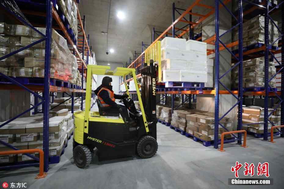 汉欧铁路车站的冷库内,带着棉帽穿着棉大衣的工人正在搬运小龙虾,为了让临时储存的货物保鲜,冷库内的温度控制在零下20度。 图片来源:东方IC 版权作品 请勿转载