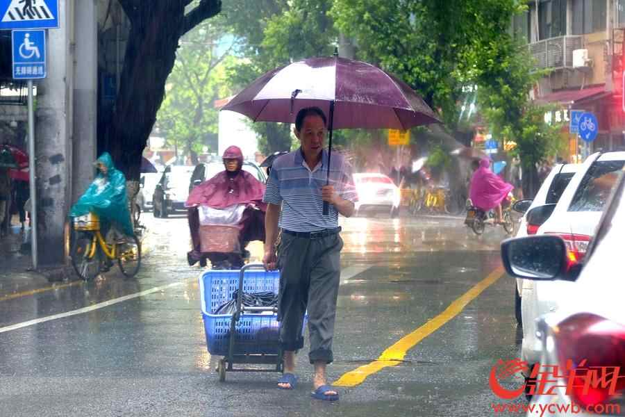 早高峰广州发布暴雨黄色预警 行人雨中匆匆出行
