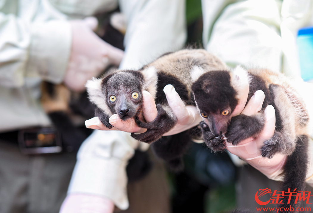 来自马达加斯加特有的世界濒危物种斑狐猴,5月8日在长隆野生动物世界诞下世界罕见的斑狐猴三胞胎!2018年6月16日,在父亲节来临之际,幸福生活在一起的斑狐猴三胞胎正式跟广大游客见面。金羊网记者宋金峪摄
