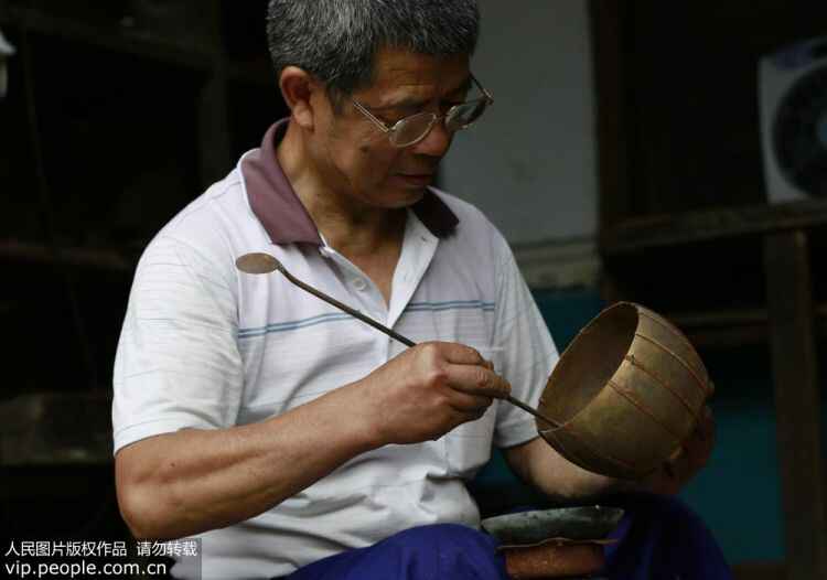 6月19日,谭福林为铜壶上铜焊。