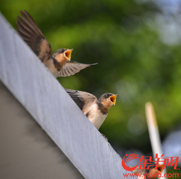 金羊网讯 6月20日,盛夏广州,烈日炎炎,在流花湖公园,细心的市民发现在一处亭台的梁柱边,有一群可爱的小燕子,燕子妈妈不时带着抓到的小虫子回来喂食小燕子,其实小燕子已经会飞翔了,但“抓虫”的本领还不是很熟练,不时跟着妈妈飞出去锻炼。市民张先生告诉记者:“近年来,广州生态环境越变越好,飞鸟都乐意在市区安家,这样的温馨画面经常见到”。金羊网记者 陈秋明摄