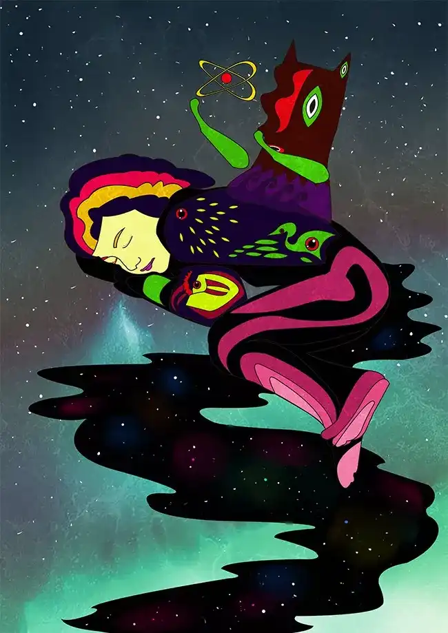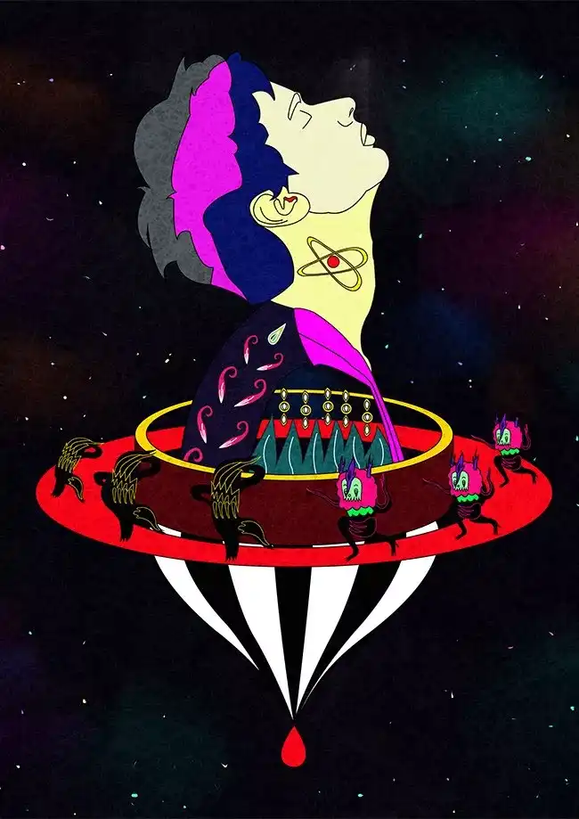 由一个患了青少年暴躁症的孩子进行创作的插画,以其发作的过程为铺垫,先开始对周围感到恐惧,仿佛自己被困在一个封闭的空间,四周的波纹则是寻找突破口的证据,后来渐渐无法融入人群,突然地性情大变,被朋友所远离,因而认为朋友是披着人皮的恶魔,其次开始攻击行为,在家大吵大闹,最后恶魔得以成形,被确诊为青少年暴躁症。