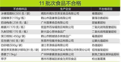 广东抽检487批次食品11批次不合格