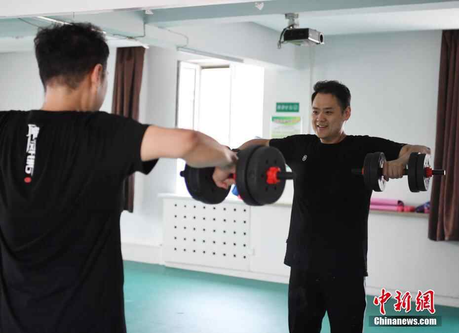 每次运动结束后郑虎都累得大汗淋漓。他说,为了减肥再多的辛苦也值得。张瑶 摄